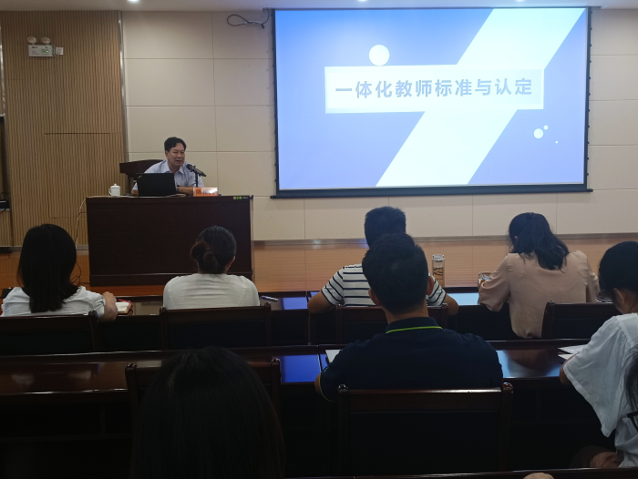 工学一体化培养模式是技工院校技能人才培养的主要方向和特色优势,为贯彻落实关于大力发展工学一体化的“百千万”计划,9月11日下午广西交通技师学院邀请正高级讲师陈振成教授开展了“一体化教师标准及认定”的培训。学院各中层领导和各专业骨干教师参加培训。