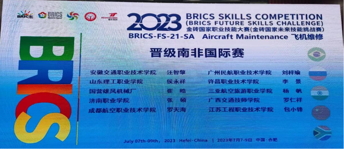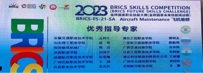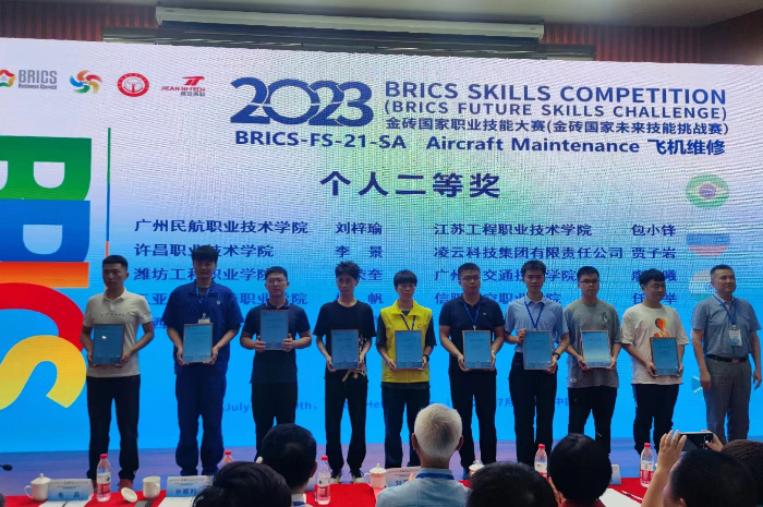 7月7日至9日,2023金砖国家职业技能大赛飞机维修全国选拔赛暨国内决赛成功落下帷幕,我院参赛选手罗仁祥沉着应战、稳定发挥,荣获决赛个人二等奖的优异成绩,将同胜出的另外9支队伍一起代表中国参加今年9月份在南非举行的国际赛决赛;民用航空系副主任肖华炜获优秀指导专家奖。这是我院师生在国家级技能大赛中取得的重大突破。