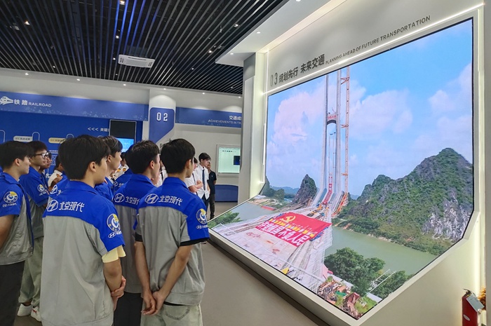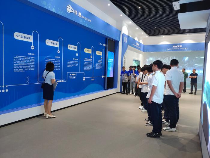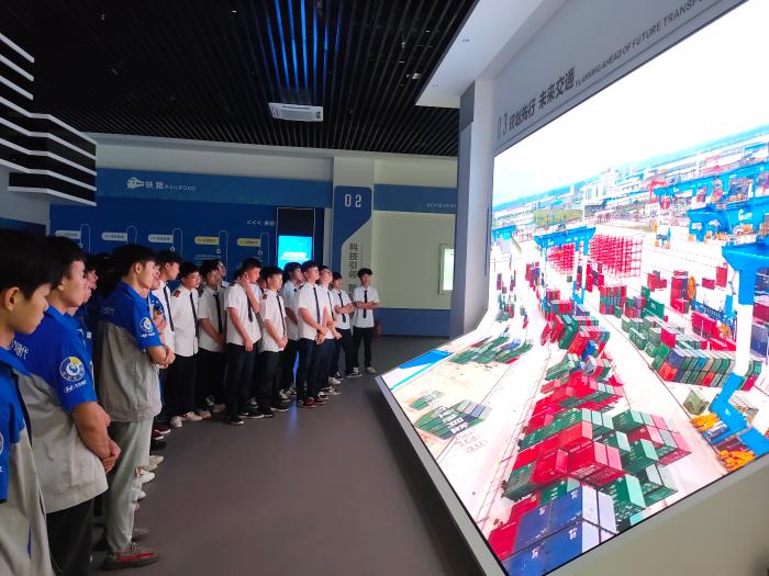 我院师生在现场工作人员的带领和细心讲解下,参观了科普基地展厅内铁路、公路、水运、邮政和航空等展区,认识广西区内具有鲜明特色的高速铁路、高等级公路、大跨径桥梁、特长隧道、大型航运枢纽、内河水运、港口码头工程、民用航空和数字交通的建设发展成果,了解其关键技术的源流演变、未来趋势和全区综合交通运输体系的基本情况。