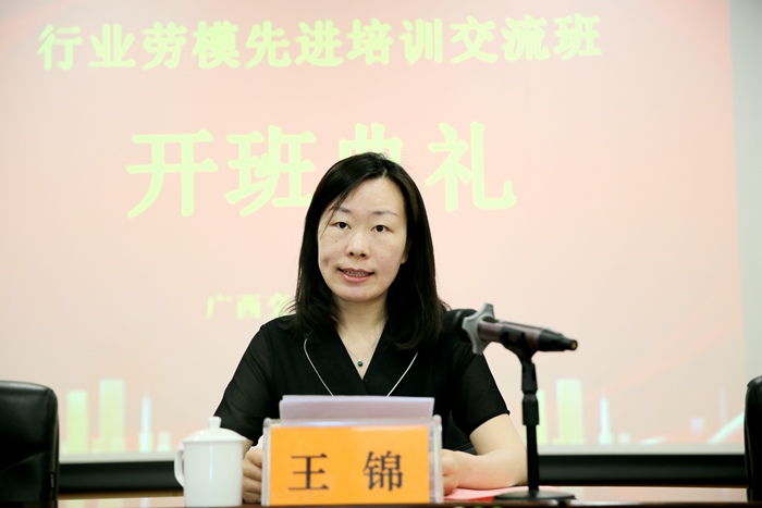 王锦在讲话中向各全国公交行业的劳动模范、劳动奖章获得者和优秀职工代表致敬。她指出,举办本次培训班是坚定理想信念,助推行业高质量发展,保持劳模先进性的需要。强调各学员要在学习成效上下功夫,把这次培训作为提高素质的新起点,注重学习提升,争取取得扎实的学习成效;在遵守纪律上严要求,按照培训日程安排,高质量、高标准的完成培训任务;在联系实际上有提升,把学习成效转化为为推动行业发展、企业转型的生动实践。