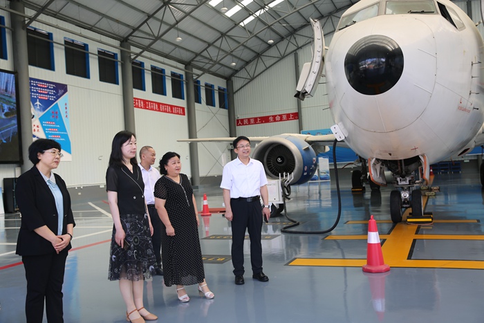 在飞机维修实训基地参观
