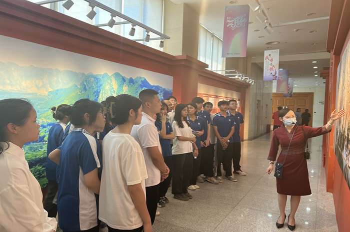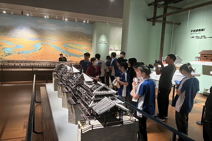 一路上,讲解员的脚步就像一把把打开秘境的钥匙,丰富的广西民族文化引来师生代表们阵阵惊呼。从地理环境、建筑风格、民族构成、民族服饰,到民风民俗、日常工具、工艺精品,师生代表们仿佛来了一趟时空之旅,被广西各族人民的智慧折服,为广西各族丰富的民俗喝彩。