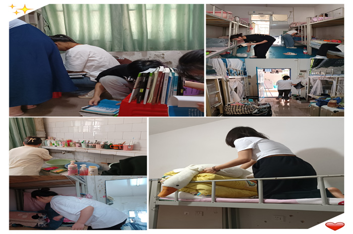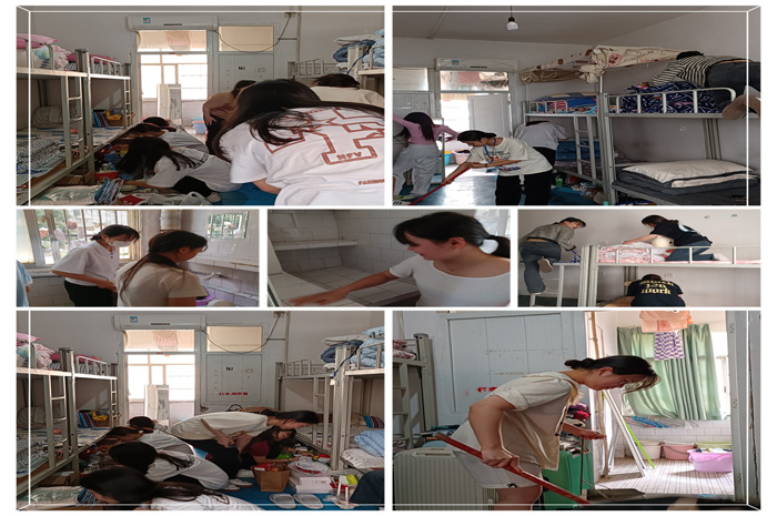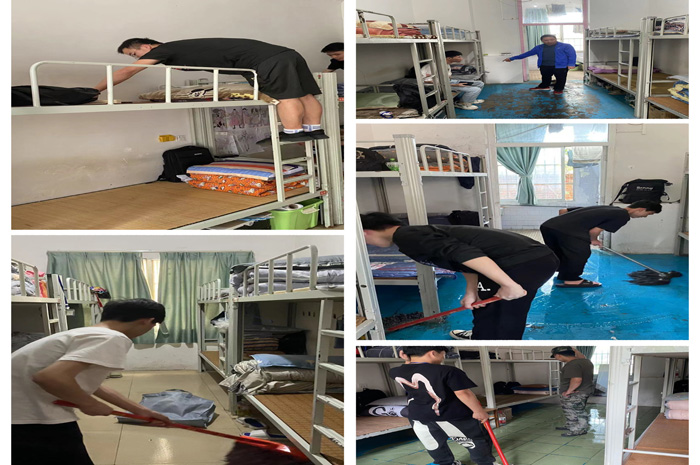 活动中,同学们积极参与,分工合作,清除墙角蛛网、厕所污垢、死角垃圾,整理被褥、杂物、洗漱用品等,对系部内务整理和卫生打扫的进行提质升级,让学生宿舍环境焕然一新。