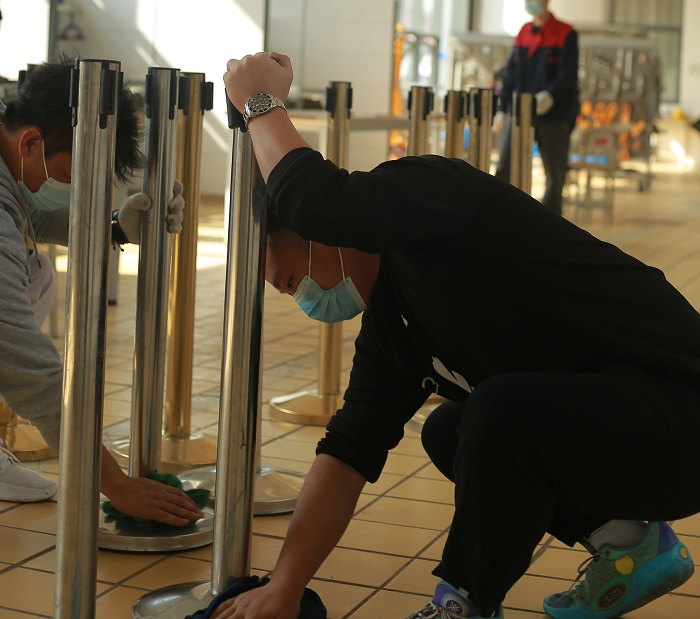 教师带领同学整理实训工位
