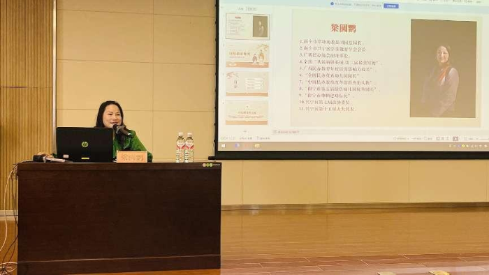 南宁市翠峰幼教集团总园长梁圆鹦来校做讲座
