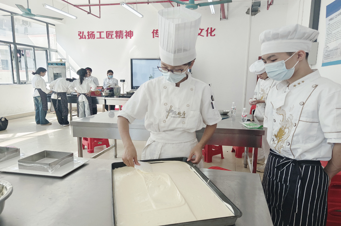 品鉴会作品以广西特色中式面点为主,各烹饪专业学生以作品项目为单位,自主完成产品配方、食材甄选、人员分工、造型设计、成品熟制、作品取名等方面过程,体验劳动的乐趣。