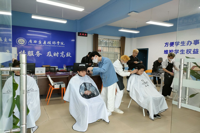 疫情期间学工科组织美发学校师生来校提供便民服务