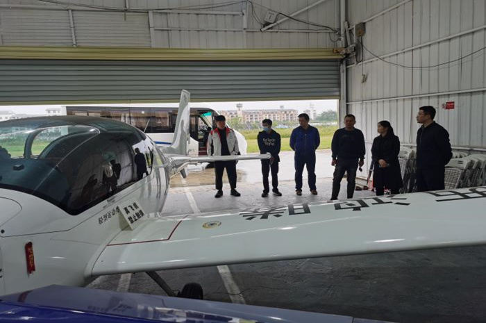广西鸿腾航空飞行基地总经理杨科介绍轻型运动类飞机情况