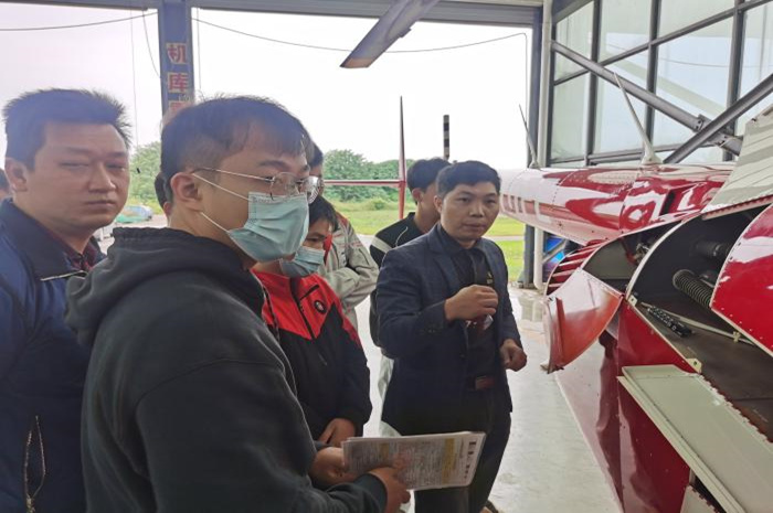 调研组实地参观了广西和美航空服务有限公司与广西鸿腾航空飞行基地,了解学习产学研运营、飞机维修与保养、轻型运动类飞机等知识