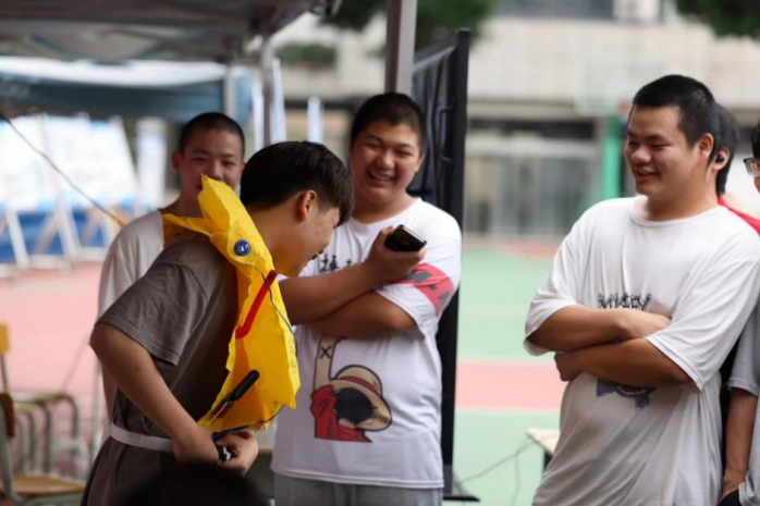 学生演示救生衣穿戴
