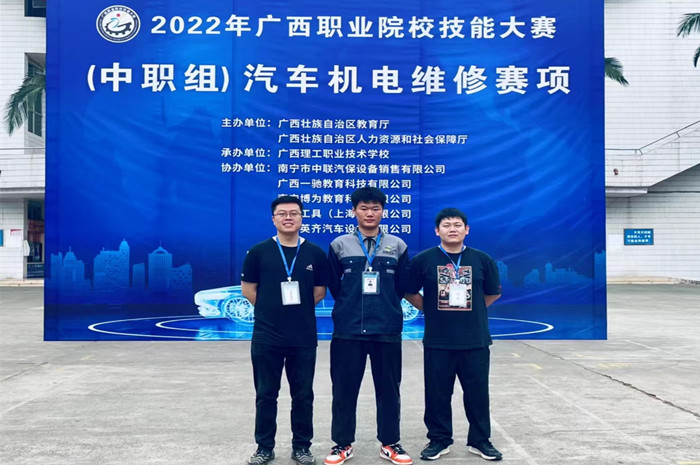 4月16日-18日,由自治区教育厅、自治区人力资源和社会保障厅主办,广西理工职业技术学校承办的2022年广西职业院校技能大赛中职组《汽车机电维修》赛项顺利举行,来自区内各中职院校、市代表队的54名选手同台竞技。我院2019级佀峰宇同学在杜毅、张闻2位指导老师的带领下,经过3天的激烈角逐,以扎实的知识和精湛的技术在众多参赛选手中脱颖而出,荣获一等奖,并代表广西参赛队参加全国职业院校技能大赛。