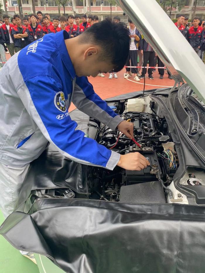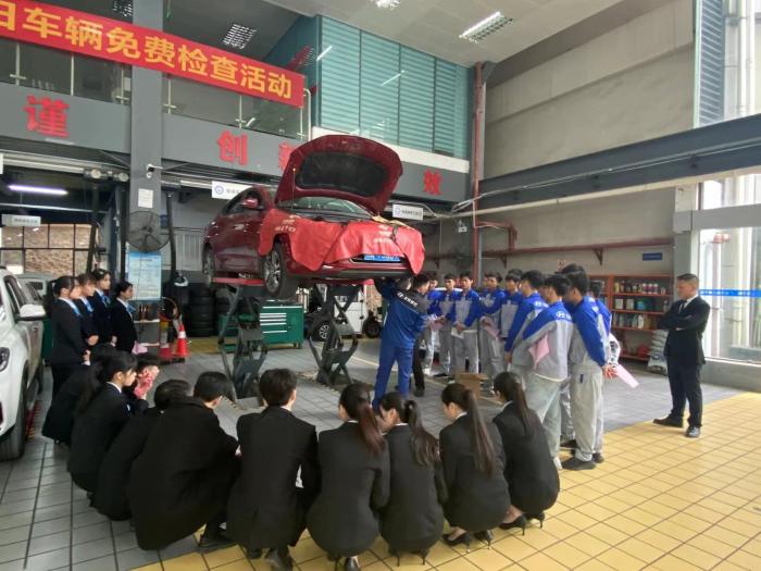 本次活动主要有“学生维修技能展示”、“北京现代热销车型营销推广展示”和“车辆保养检查技能展示”三个环节。活动现场,21级北京现代机修班同学以规范、整齐的维护作业展现出饱满的“精气神”,21级北京现代营销班同学现场活学活用销售技巧展现出扎实的基本功在企业心中留下了良好的印象。在车辆检查保养技能展示环节中,企业维修技师演示了实际维修过程,并强调维修中的注意事项,让学院师生体验实际维修作业中的精细化。