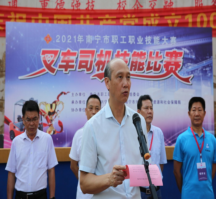 7月25日,由南宁市职工职业技能大赛组委会主办,南宁市兴宁区总工会、人力资源和社会保障局承办,我院协办的2021年南宁市职工职业技能大赛叉车司机技能比赛在我院邕武校区灯光球场举行。兴宁区人大党组成员、总工会主席蒋海生,兴宁区总工会常务副主席韦永旗,南宁市总工会党组成员、四级调研员李应华参加本次比赛的开幕式,开幕式由我院副院长关菲明主持。