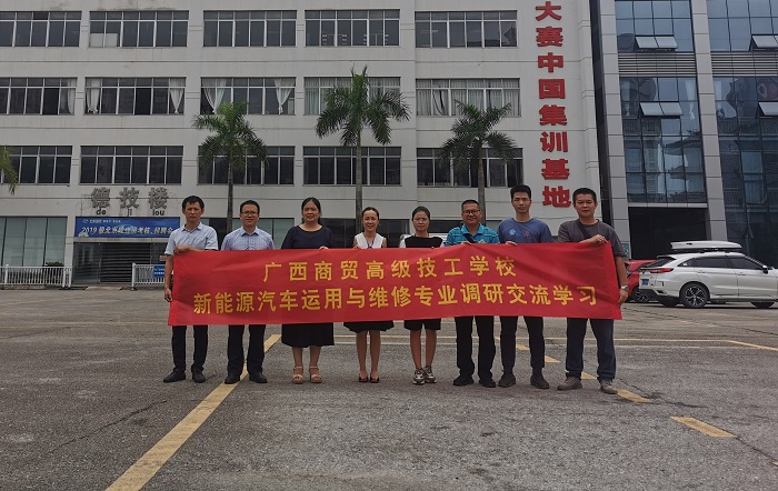 6月24日上午,广西商贸高级技工学校教务科副科长刘艳飞、汽车工程教研室主任李国君等一行8人,来我院交流学习。学院教务科副科长黄海、汽车系副主任刘小强、技能大师李宣葙及新能源教研组组长秦浠莲出席交流活动。