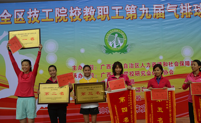 学院气排球队在院领导的大力支持下,参加广西人力资源和社会保障厅举办的全区技工院校第九届气排球比赛,勇夺男子甲级组第一名,女子甲级组第二名。