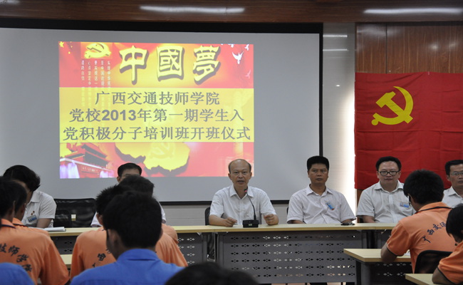 5月27日晚,我院党校2013年第一期学生入党积极分子培训班开班仪式在国家高技能人才培训基地启动。经过严格考核,38名入党积极分子进入了此次培训班。