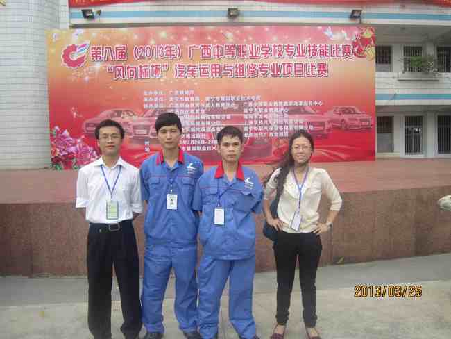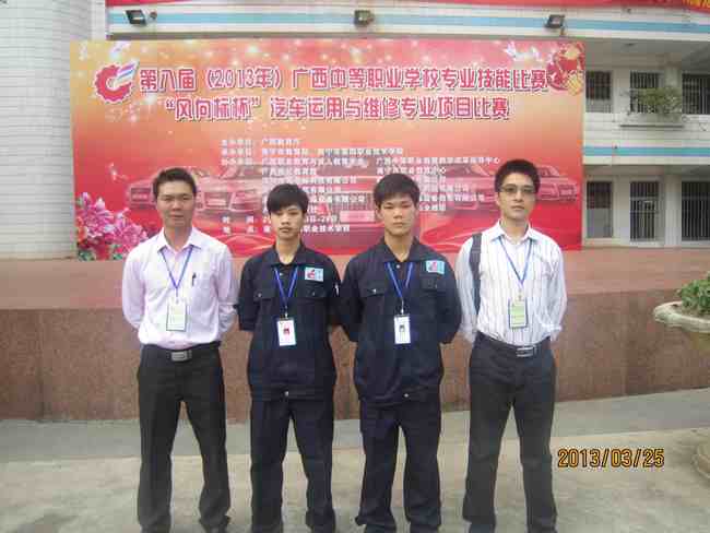 为贯彻落实《广西壮族自治区新时期深化职业教育攻坚五年计划》,深入推进国家民族地区职业教育综合改革试验区建设,进一步创新职业教育技能竞赛活动,形成技能竞赛“月月有、校校有,行行有”的新机制,充分发挥技能竞赛在推动职业教育校企合作、质量提升、内涵发展中的重要导向作用,由广西教育厅主办的第八届(2013年)全区中等职业学校专业技能比赛“风向标杯”汽车运用与维修专业项目比赛于2013年3月29日在南宁市落下了帷幕。