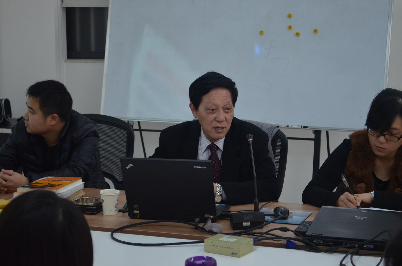图一 上海建桥学院汽车营销校研室主任裘文才进行题为《汽车市场的发展趋势与现实课题》的讲课