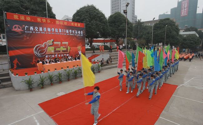 图13:11月15至16日,学院一年一度的学生运动会正式拉开帷幕,学生彩旗队和鲜花队率先登场