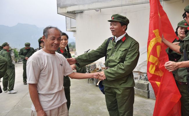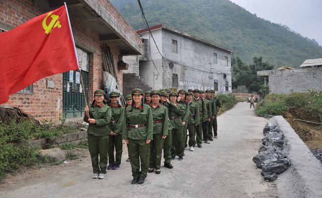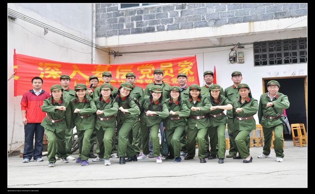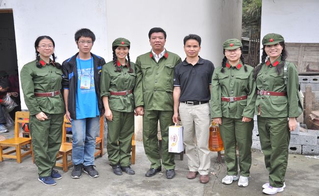 为迎接党的十八胜利召开,我院第三党支部于11月3日身着军服,在南宁市上林县西燕乡开展了“喜迎十八大、党员在行动”红色教育活动。红色教育不仅能够为各位党员同志提供一次放松紧张工作的机会,而且能够在实践中挖掘文化内涵,培养支部党员同志吃苦耐劳、团结协作的精神。