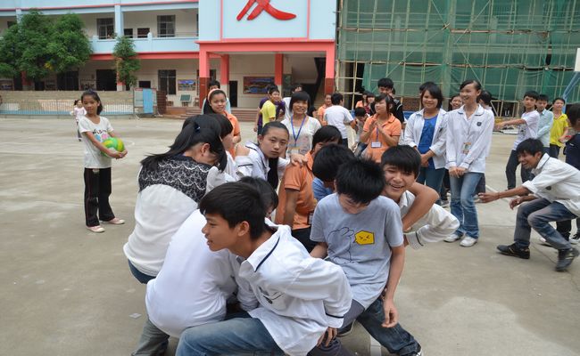 10月17日下午,黄英姑和甘麒燕两位党员教师走进南宁星星学校初三年级的班级课堂,给他们带去了一堂别开生面的素质训练课。课程中,分为六个小组,我院团员志愿者参与到游戏当中,与该班级同学进行了良好的互动与交流。