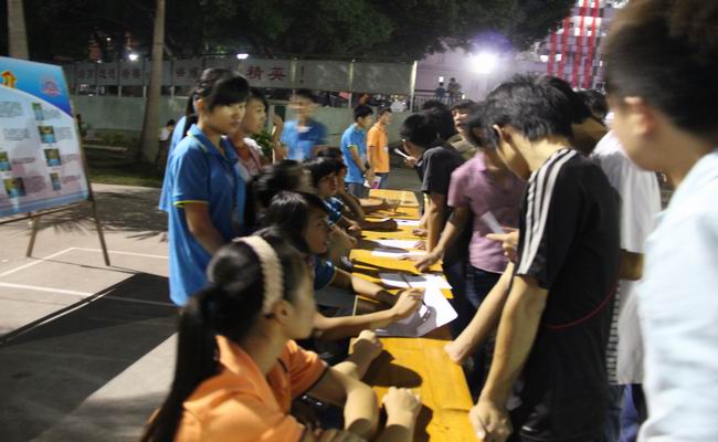10月22日晚7点30分,为喜迎党的十八大的召开,我院各学生社团在学院团委的组织下,在灯光球场火热拉开2012年社团招聘报名工作的序幕。
