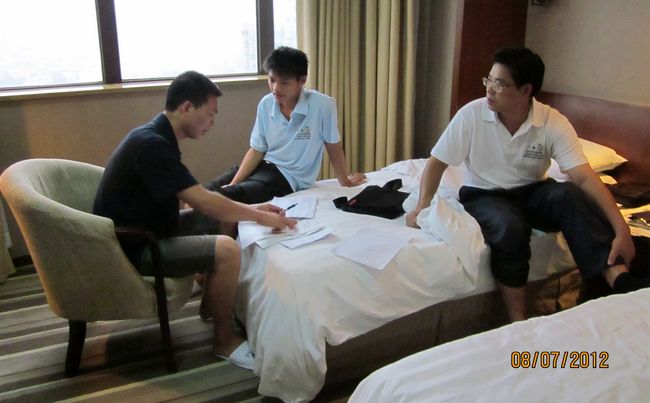 图一:我院选手陆建新与指导老师陆润宗赛前备战