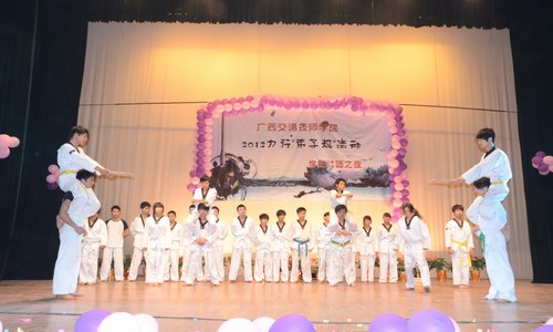 晚会在音乐协会的乐器演唱《奔跑》中拉开帷幕。随后,学院管乐队演奏《检阅》,气势宏伟的管乐,响彻整个礼堂,赢得全场观众的喝彩;心理健康协会邀请与南宁扶壮小学的小朋友表演合唱《让世界充满爱》,展示了协会成员和小朋友的和谐,体现了学院开展“力行《弟子规》”感恩教育已见成效;计算机协会为我们带来弟子规小品《一生须惜那些爱》,小品提醒我们要感恩父母的养育之恩,不能让“树欲静而风不止,子欲养而亲不待”的悲剧发生,让同学们深受到启发;跆拳道协会和搏击协会的精彩的武术表演更是让全场的观众惊叹不已;篮球协会的街舞篮球秀和极限协会的轮滑表演赢得了观众的阵阵叫好,展现了现代中职生的青春活力。汽车商务协会的手语表演《勇往直前》彰显了协会成员的自信,学生会表演的印度舞《西域风情》以及11汽车营销一班的甜美舞蹈《彩虹微笑》优美的舞姿赢得了现场同学的尖叫;羽毛球协会以《新闻联播》形式展现学院学生的精彩生活片段。本场晚会节目形式多样,精彩多多,同时,晚会还得到了学院的支持,设置了《弟子规》知识问答互动环节,现场的气氛一直高潮并进,欢笑声,鼓掌声,加油声此起彼伏。