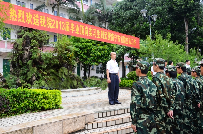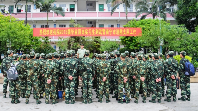 学校欢送2013届毕业顶岗实习生到武警南宁市消防支队工作