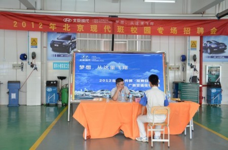 在6月6日举行的2011级北京现代班专场招聘会上,北京现代班毕业生通过与企业对话,均顺利通过面试,找到了合适的企业,实现了双赢合作的目的。广西鑫广达长久汽车商贸有限公司、北京现代玉林得利特约销售服务店、北京现代桂林景顺特约销售服务店等5家4S店的人事主管、技术负责人等组成面试小组进行面试。招聘流程分招聘沟通会、面试学生自我介绍、企业招聘会特约店与学生的双选会三个环节进行。