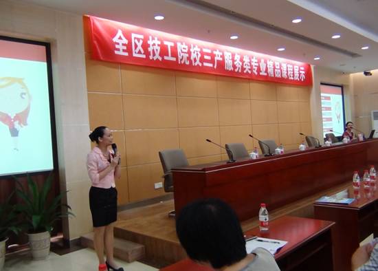 这次展示活动共有来自全区11所技工校校26位教师进行一体化、专业理论课、实习实训课、专业课四种类型精品课程的展示。展示活动分三个流程进行,首先由各门精品课程的代表就课程设置、教学内容、教学方法、教学队伍、教学环境、教学特色、教学效果等方面作介绍;其次由各校对精品课程相关教学文件进行现场展示和交流;最后由技工教研室组织专家对各校展示的精品课程进行了评比。