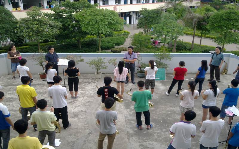 我校管乐队建立于2012年3月,其建立的初衷是培养学生的兴趣特长,加强学生的素质教育,以积极向上的特色校园文化熏陶学生。管乐队由一、二年级的共40多名学生组成,在教师们两个月的精心培育下,这个学生艺术团队不断地成熟起来。