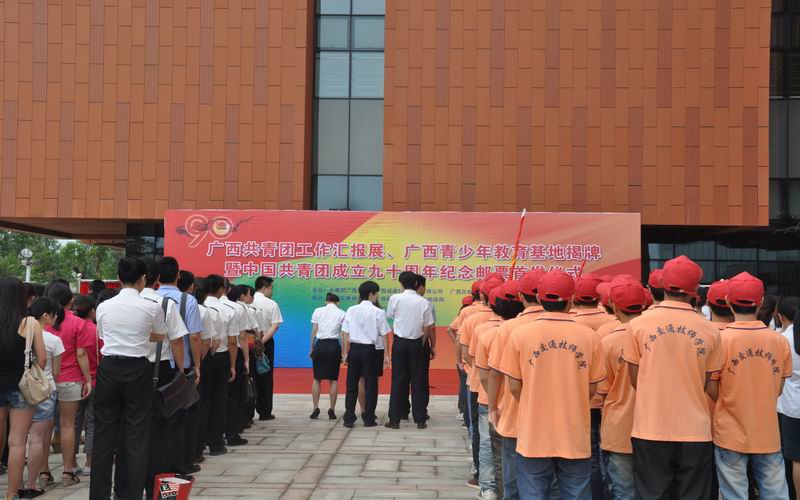 5月4日上午,为纪念中国共青团成立90周年、五四运动93周年,在校团委组织下,学校40名学生服装整齐,精神抖擞坐校车参加在广西规划馆举行的广西共青团工作汇报展、广西青少年教育基地揭牌以及纪念中国共青团成立90周年邮票首发仪式,这是我国邮政史上第一次为共青团团庆发行纪念邮票。
