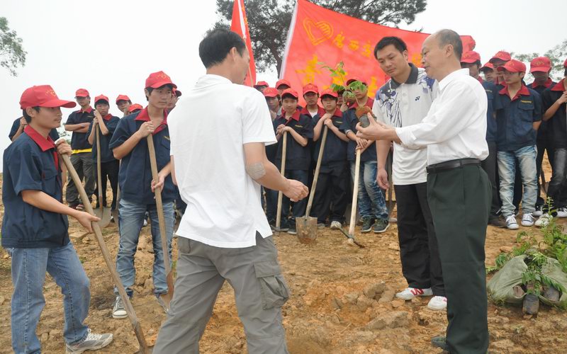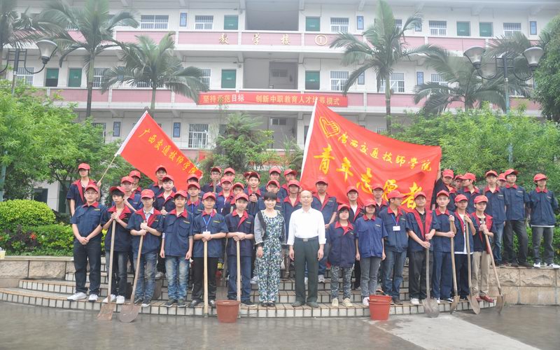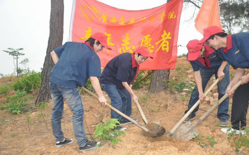 4月27日上午,我校五十名学生志愿者在学校党委书记罗华的带领下,坐车前往兴宁区五塘镇参加由南宁市兴宁区绿化委组织开展的义务植树活动。