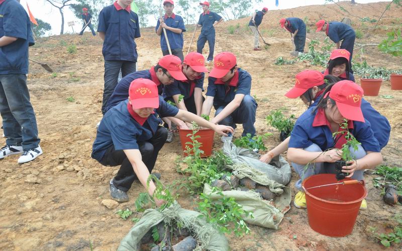 学校党委书记罗华身先士卒,亲自教授植树技巧。志愿者们鼓足了干劲儿,人人情绪高昂,干劲十足,大家分工合作,扛树苗、填土、踩土、浇水,每个环节都一丝不苟,一颗颗小树苗拔地而起。经过1个多小时的奋战,志愿者们按照要求圆满完成了预定的植树任务后,继续发扬“学雷锋”精神,积极配合南宁市妇幼保健院职工完成他们的植树任务。