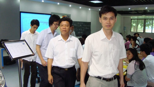图六:韦红教校长和钟修仁副校长在广州市交通技师学校参观考察