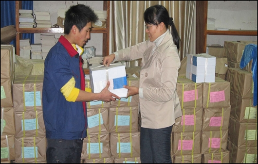 图书管理员在清点教材