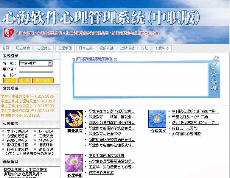 点击图片,转入心理管理系统。(限用于校园网)