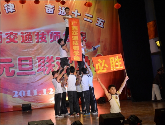 2011年12月29日,学校举行2012年元旦综合文艺晚会,在歌舞声中辞去旧岁,在欢声笑语中迎来新年。自治区交通运输厅安全监督处处长李日昌、审计厅派出交通建设审计处处长陈兰、自治区人力资源和社会保障厅职业能力建设处处长张远、自治区技能鉴定中心主任王宏、自治区道路运输管理局党委书记孙永生,自治区交通运输厅、自治区人力资源和社会保障厅、自治区道路运输管理局等单位相关处、科、室的有关领导,以及学校校企合作单位、共建单位、辖区单位、友邻单位的领导出席晚会,学校全体校领导、中层领导干部和师生们共同观看了演出。广西交通投资集团南宁高速运营有限公司、广西南宁市交警四大队演职员友情演出,精彩的表演赢得满堂喝彩。