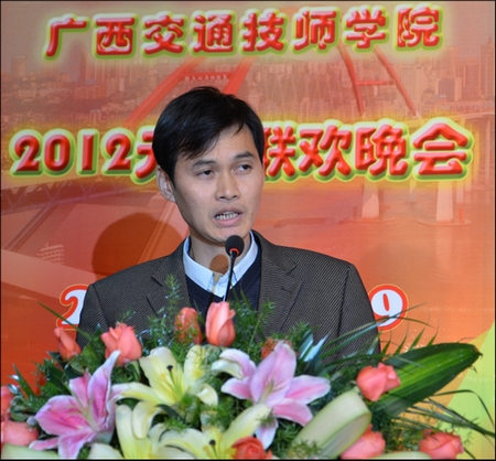韦红教校长在晚会致词中说,2011年,在上级主管部门的正确领导和各兄弟单位的大力支持下,学校依托蓬勃发展的交通运输建设大平台,抢抓中央、自治区重视和加强职业教育的历史机遇,围绕学校 “一大目标六项任务”的总体要求,同心同德,克难攻坚,创先争优,稳步推进学校各项工作,教育管理和两个文明建设取得了丰硕成绩,开创了学校工作新局面。新的一年里,全校师生将满怀激情,扬帆启航,开拓创新,与时俱进,科学发展,以高昂的斗志、饱满的热情、务实的作风努力把学校建设成为一所现代化、综合性的万人交通技工学校,打造文明、进步、和谐的中职示范院校。