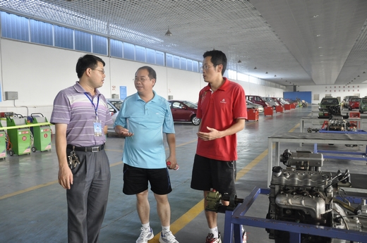 在柳州市交通学校,我校一行受到了该校领导干部的热忱接待。交流会上,韦红教校长表示,柳州市交通学校每年为上汽通用五菱汽车股份有限公司、东风柳州汽车有限公司和广西柳工集团等企业输送了大量学生,所取得的成绩很值得我们学习。在观看了学校的宣传短片之后,柳州市交通学校校长冯明源向我们介绍了该校领导班子成员以及近几年学校的发展情况、专业建设情况以及校企合作方式等。冯校长说,近年来,学校注重校园文化建设,全校师生共同努力,力争把学校打造广西汽车人才培养的摇篮。随后,我校一行又参观了该校的汽车检修综合技能实训中心、新能源汽车综合检修实训中心、汽车焊接实训中心、汽车电工电子综合实训室等。双方领导干部在参观过程中积极交流,共同探讨,取长补短,气氛融洽。