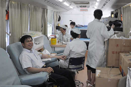 图一 我校李爱东主任献血现场