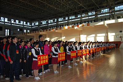 图1 我校参加全区技工院校第六届教职工气排球赛开幕式