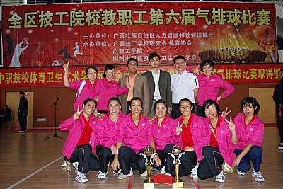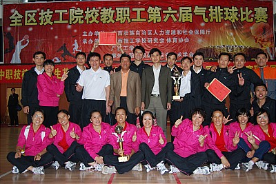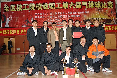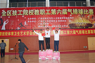 为丰富全区技工院校教职工业余生活,促进精神文明建设,自治区人力资源和社会保障厅于2010年12月2—4日在柳州市隆重举行全区技工学校教职工第六届气排球比赛。