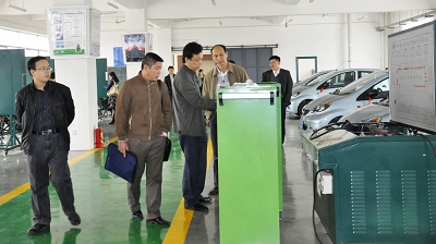 图四:关菲明副校长陪同考察团参观我校汽车电气实验室
