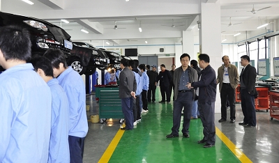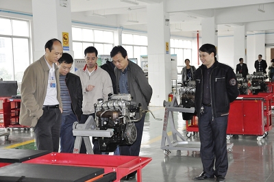 图八:柳州市交通学校的专业教师在参观我校汽车专业实训基地
