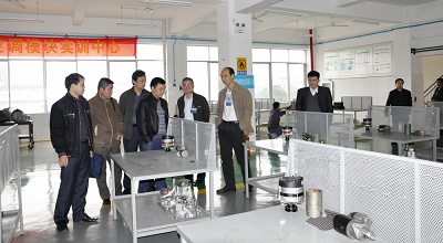 图五:关菲明副校长陪同考察团参观参观我校汽车自动波实验室