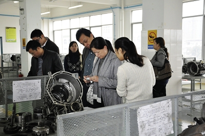 图七:柳州市交通学校的专业教师在参观我校汽车二级维护实验室