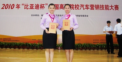 由教育部高等学校高职高专汽车类专业教学指导委员会与中国汽车工程学会共同举办的2010年“比亚迪杯”全国高职院校汽车营销技能大赛于2010年5月21日在深圳圆满落下帷幕,我校荣获二等奖。