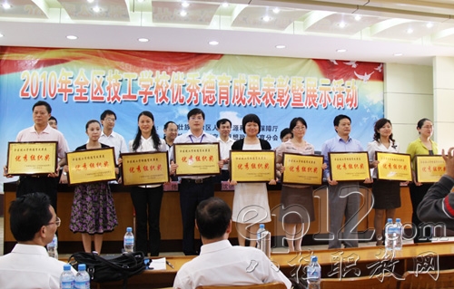 会议还表彰了在德育教育教学工作中表现突出的技工学校以及长期在教学一线辛勤工作的德育教师。我校在荣获“全区德育成果先进集体”称号的同时,多位教师在部分项目的评比中也获得了2个二等奖3个三等奖的荣誉,表现出了我校在学生德育教育教学工作中取得的优异成绩和巨大的发展潜力。